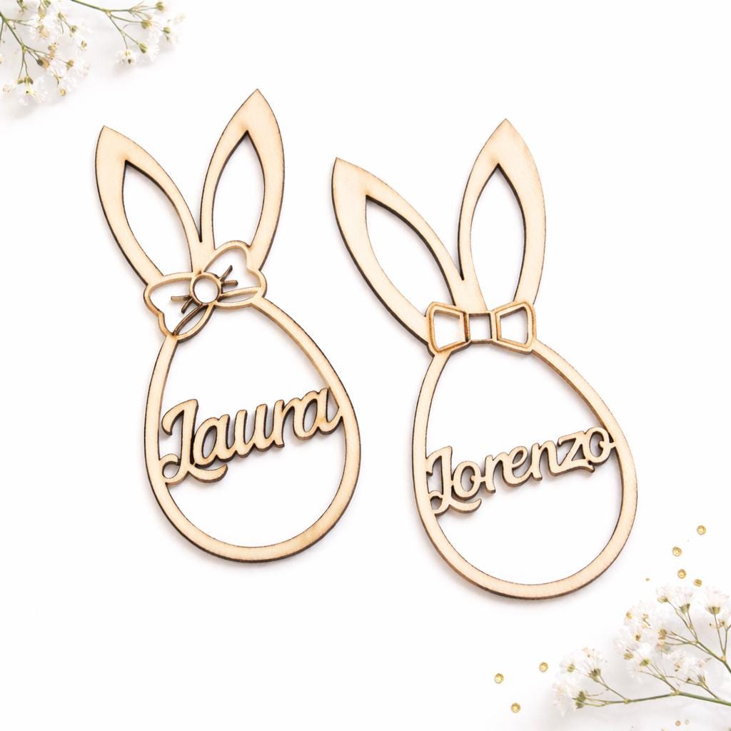 Dieser personalisierte Osterhase aus Holz ist eine stilvolle und liebevolle Dekoration für die Osterzeit.