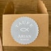 The size of the stickers is 4 cm. However, I can change this to suit your needs. I can also adapt the text to your requirements or you can send me your own text for the stickers.