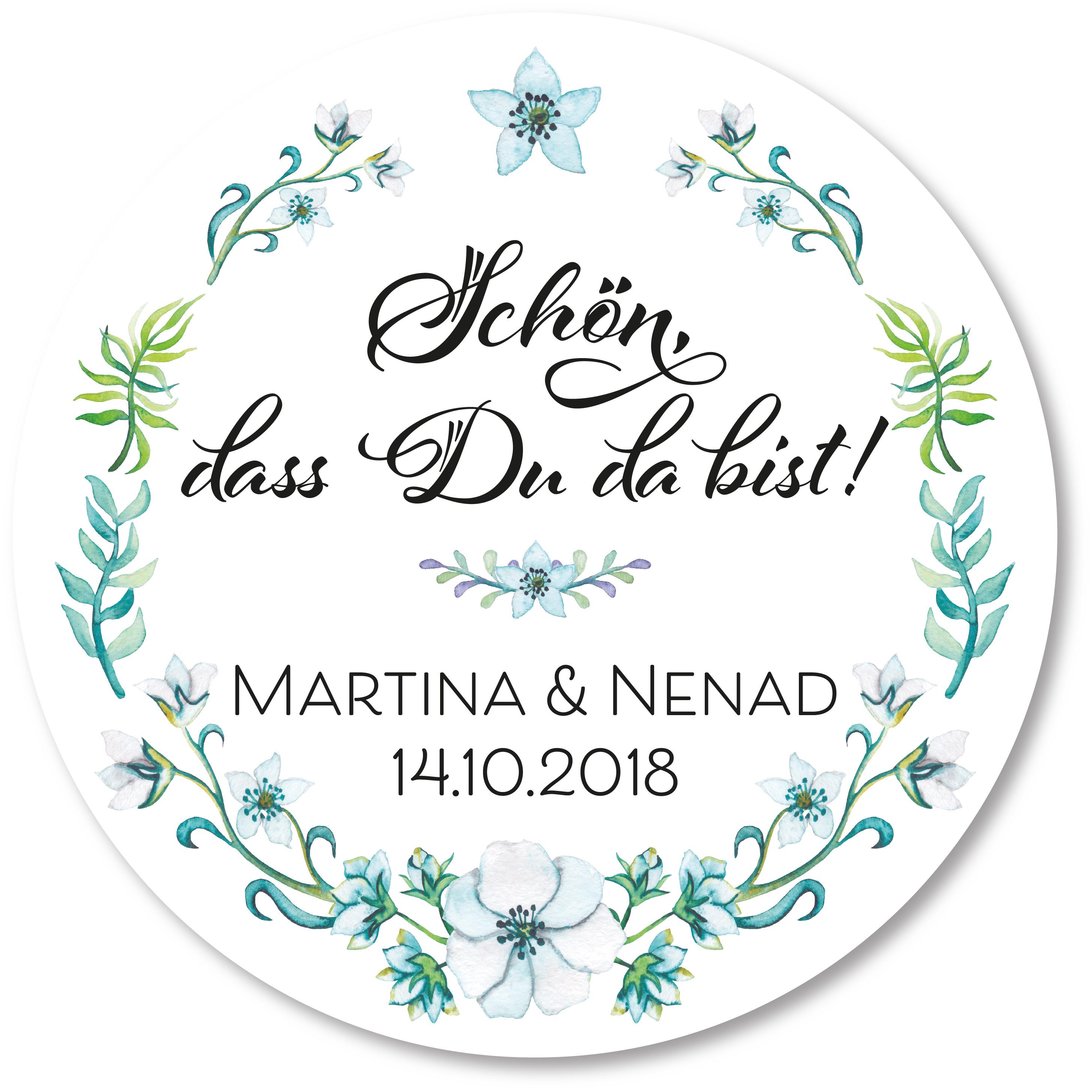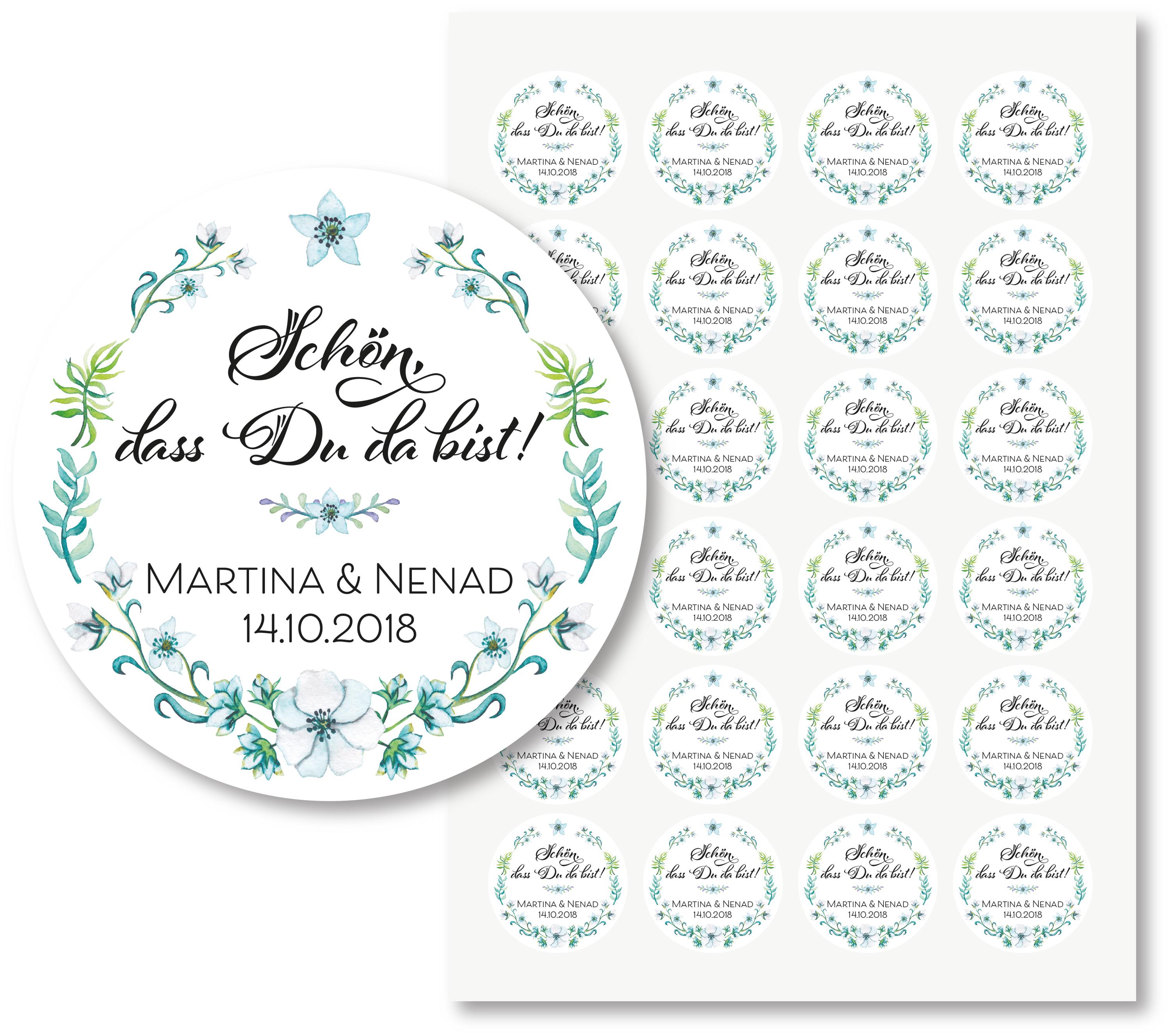 Diese zarten, handgefertigten Aufkleber mit dem Schriftzug „Schön, dass Du da bist!“ verleihen jedem Geschenk eine persönliche Note.