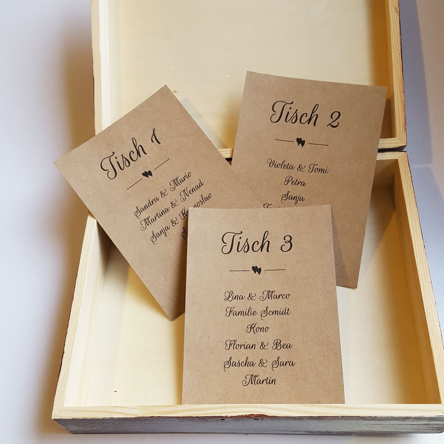 Einfach perfekt! Ich bin absolut begeistert von meinen Tischkarten. Und sie passen perfekt auf den Holzständer! Vielen DANK!!!