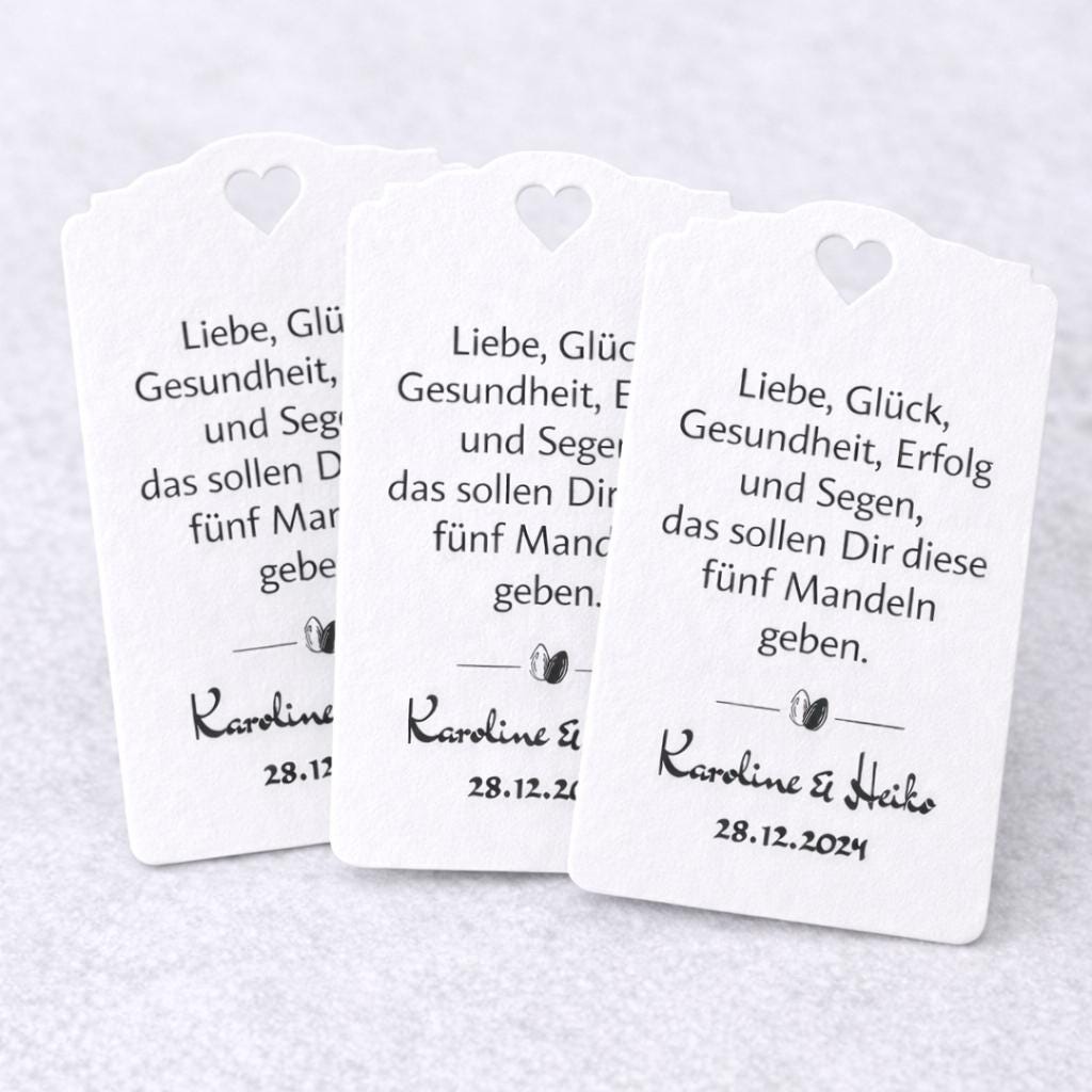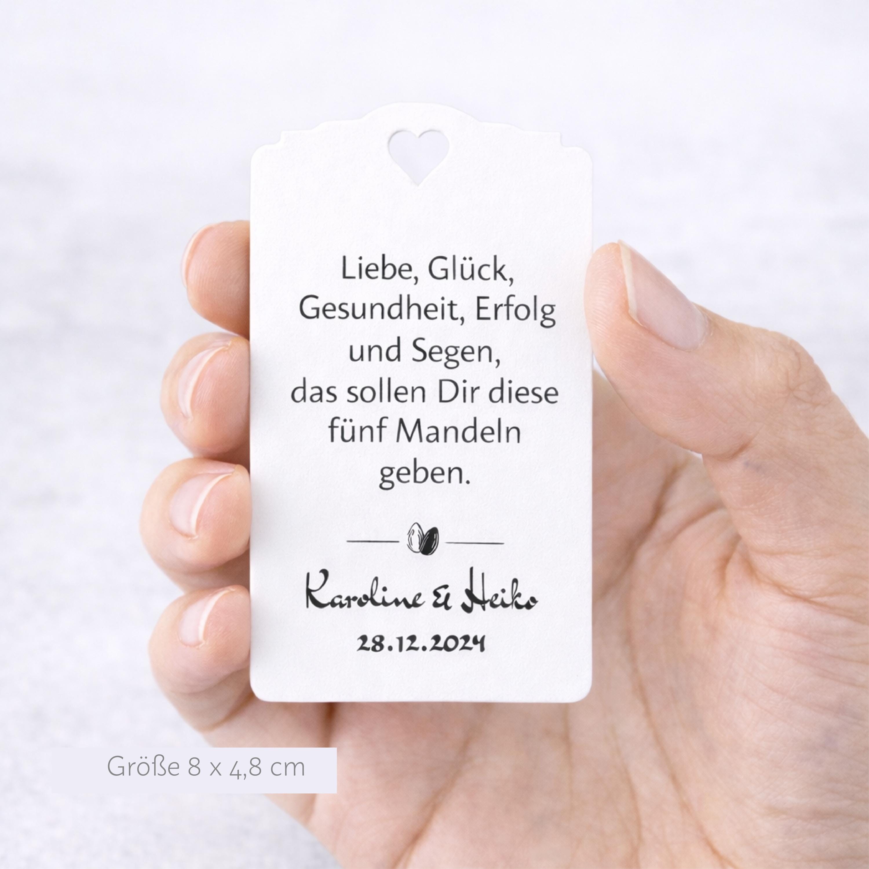 25 Personalized Gift Tags with Almond Saying – 8x5 cm